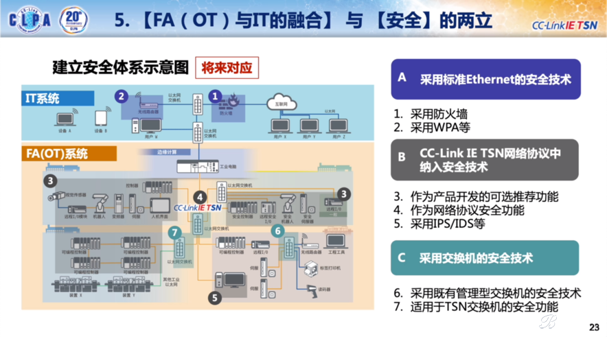 3、針對OT網絡,CC-Link IE TSN已經研究了大量具備安全技術、以及采用交換機的安全技術。