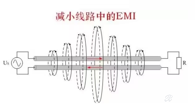 當電路存在數(shù)個回路電流,可將每個回路視為一個感應線圈,或變壓器線圈的初、次級。當某個回路中有電流流過時,另外一個回路中就會產(chǎn)生感應電動勢,從而產(chǎn)生干擾。最有效減少干擾的方法就是盡量減少每個回路的有效面積。