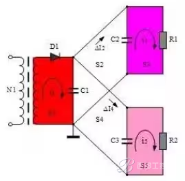 幾個電流回路互相串聯(lián)在一起進行供電,容易產(chǎn)生電流共模干擾,特別是在高頻放大電路中,會產(chǎn)生高頻噪音。電流共模干擾的原因是:?I2 = ?I3+ ?I4+ ?I5