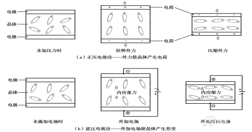 如果在晶片的兩極上加交變電壓,晶片就會產生機械振動,同時晶片的機械振動又會產生交變電場。